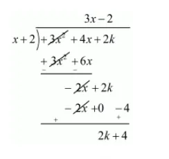 Now, we divide $f(x)=3 x^{2}+4 x+2 k$ by $g(x)=x+2$ to find the value of k