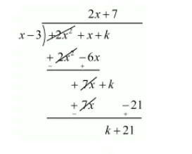 Now, we divide $f(x)=2 x^{2}+x+k$ by $g(x)=x-3$ to find the value of $k$
