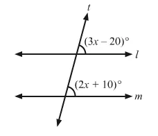 $\Leftrightarrow 3 x-20=2 x+10 \quad$ [Corresponding Angles]