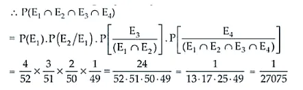 Let E1, E2, E3 and E4 be the events that first, second, third and fourth card is King respectively.