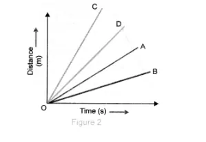 (b) Explanation: Slope of distance - time graph = speed of object.