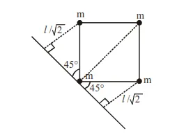 $=\mathrm{m}(0)^{2}+\mathrm{m}(l \sqrt{2})^{2}+\mathrm{m}\left(\frac{l}{\sqrt{2}}\right)^{2}+\mathrm{m}\left(\frac{l}{\sqrt{2}}\right)^{2}$