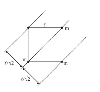 $\mathrm{I}=\mathrm{m}(0)^{2}+\mathrm{m}\left(\frac{\ell}{\sqrt{2}}\right)^{2} \times 2+\mathrm{m}(\sqrt{2} \ell)^{2}$