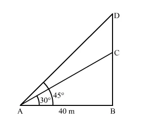 $\mathrm{AB}=40 \mathrm{~m}, \angle \mathrm{BAC}=30^{\circ}$ and $\angle \mathrm{BAD}=45^{\circ}$
