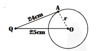 From a point Q, the length of the tangent to a circle is 24 cm and the distance of Q from the centre is 25 cm. The radius of the circle is -
