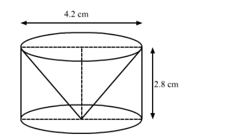 From a solid cylinder of height 2.8 cm and diameter 4.2 cm, a conical cavity of the same height and same diameter is hollowed out.