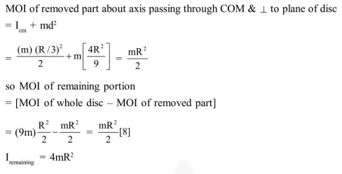 From a uniform circular disc of radius $\mathrm{R}$ and mass $9 \mathrm{M}$, a small disc of radius $\frac{\mathrm{R}}{3}$ is removed as shown in the figure. The moment of inertia of the remaining disc about an axis perpendicular to the plane of the disc and passing through centre of dise is :