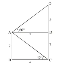 $\Rightarrow \quad \tan 60^{\circ}=\frac{h}{x}$