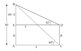 $\Rightarrow \quad \frac{60}{\sqrt{3}}=(60-h) \sqrt{3}$