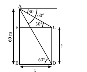 $\mathrm{AB}=60 \mathrm{~m}, \angle \mathrm{ACE}=30^{\circ}$ and $\angle \mathrm{ADB}=60^{\circ}$