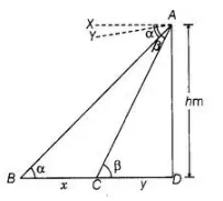$\therefore$ $x=\frac{h}{\tan \alpha}-\frac{h}{\tan \beta}$