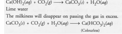 (a) CO2 gas : It is a colourless and odourless gas. When passed through lime water, it will initially become milky.