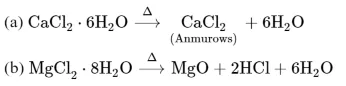 Statement $\mathrm{I}:$ Both $\mathrm{CaCl}_{2} \cdot 6 \mathrm{H}_{2} \mathrm{O}$ and $\mathrm{MgCl}_{2} \cdot 8 \mathrm{H}_{2} \mathrm{O}$ undergo dehydration on heating.