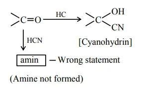 Statement II : The nucleophilic addition of hydrogen cyanide to an aldehyde or a ketone yields amine as final product.