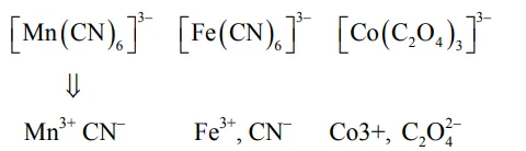 Statement I : $\left[\mathrm{Mn}(\mathrm{CN})_{6}\right]^{3-},\left[\mathrm{Fe}(\mathrm{CN})_{6}\right]^{3-}$ and $\left[\mathrm{Co}\left(\mathrm{C}_{2} \mathrm{O}_{4}\right)_{3}\right]^{3-}$ are d $^{2} \mathrm{sp}^{3}$ hybridised.