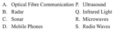 Given below in the left column are different modes of communication using the kinds of waves given in the right column.