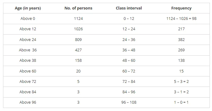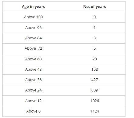 Given below is a cumulative frequency distribution table showing ages of the people living in a locality: