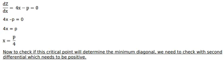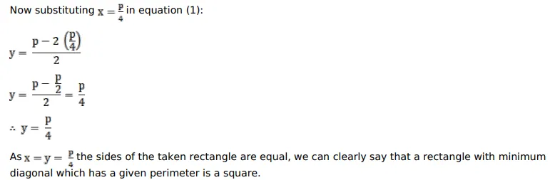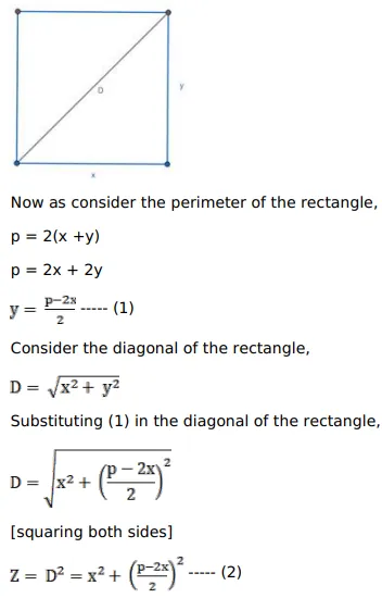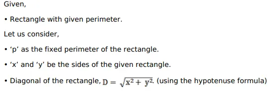 Given the perimeter of a rectangle, show that its diagonal is minimum when it is a square.