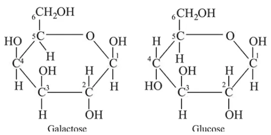 Galactose and glucose are $\mathrm{C}_{4}$ epimers.