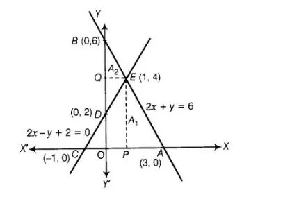 Graphically, solve the following pair of equations 2x + y = 6 and 2x – y + 2 = 0
