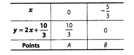 Now, table for $2 x-y+\frac{10}{3}=0$,