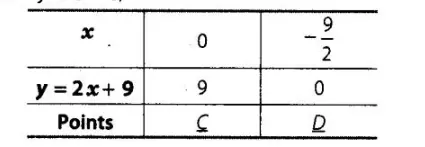 and table for $2 x-y+9=0$,