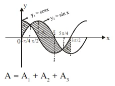 The area bounded by the curves $y=\cos x$ and $y=\sin x$ between the ordinates $x=0$ and $x=$ $\frac{3 \pi}{2}$ is :-