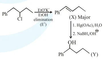 Heating of 2 -chloro-1-phenylbutane with EtOK/EtOH gives $\mathrm{X}$ as the major product. Reaction of $\mathrm{X}$ with $\mathrm{Hg}(\mathrm{OAc})_{2} / \mathrm{H}_{2} \mathrm{O}$ followed by $\mathrm{NaBH}_{4}$ gives $\mathrm{Y}$ as the major product. $Y$ is :