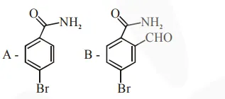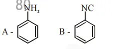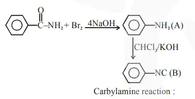 Hoffmann bromomide degradation of benzamide gives product $A$, which upon heating with $\mathrm{CHCl}_{3}$ and $\mathrm{NaOH}$ gives product B. The structures of $\mathrm{A}$ and $\mathrm{B}$ are :