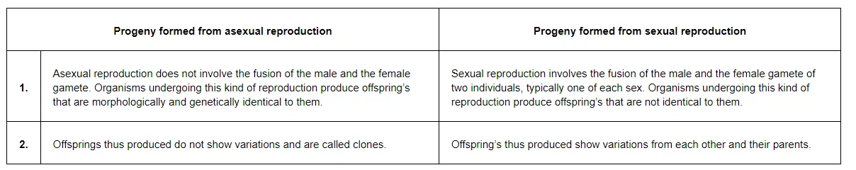 How does the progeny formed from asexual reproduction differ from those formed by sexual reproduction?