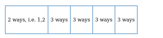 Total number of ways $=2 \times 3 \times 3 \times 3 \times 3=162$