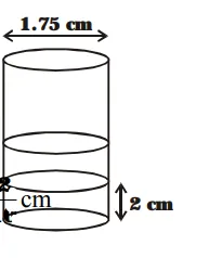 $\therefore$ Volume $=\pi r^{2} h=\frac{22}{7} \times\left(\frac{175}{200}\right)^{2} \times \frac{2}{10} \mathrm{~cm}^{3}$