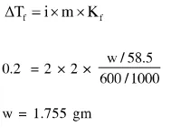 How much amount of $\mathrm{NaCl}$ should be added to $600 \mathrm{~g}$ of water $(\rho=1.00 \mathrm{~g} / \mathrm{mL})$ to decrease the freezing point of water to $-0.2{ }^{\circ} \mathrm{C}$ ?
