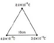 How much work has to be done in assembling three charged particles at the verticals of an equilateral Triangle as shown in figure $(29-E 5)$ ?