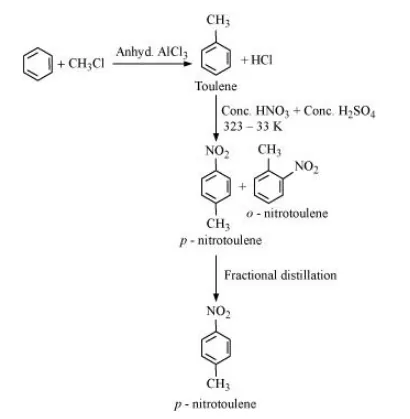 (iii) Benzene can be converted into p-nitrotoulene as: