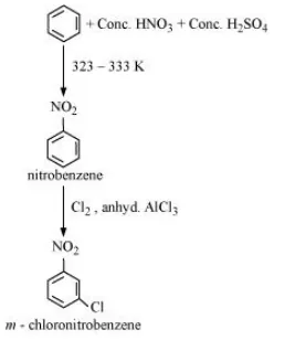 (ii) Benzene can be converted into m-nitrochlorobenzene as: