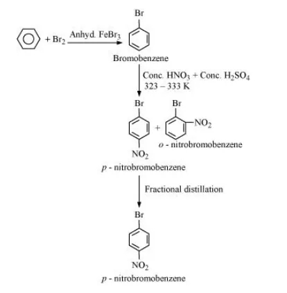 (i) Benzene can be converted into p-nitrobromobenzene as: