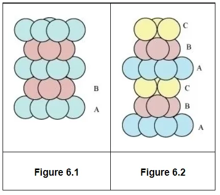The side views of hcp and ccp are given in figures 6.1 and 6.2 respectively.