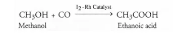 (b) From methanol: These days ethanoic acid is manufactured by the reaction between methanol and carbon monoxide in the presence of iodine-