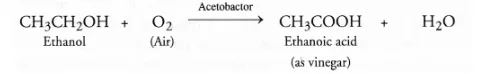 (a) From ethanol: This method involves the slow oxidation of a dilute solution of ethanol (10-15 per cent) by oxygen present in air in the presence of an enzyme acetobactor.