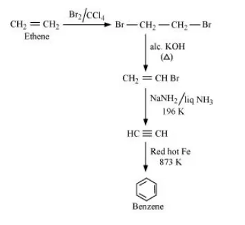 .(ii) Benzene from Ethene: