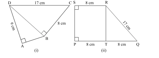 (ii) Area of trap(PQRS) $=\frac{1}{2}(8+16) \times 8=96 \mathrm{~cm}^{2}$