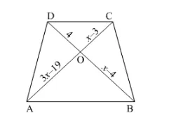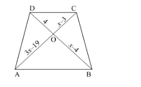 And $O A=3 x-19, O B=x-4 O C=x-3$ and $O D=4$