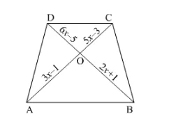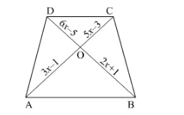 (iii) In the given figure, AB || CD, If OA = 3x − 19, OB = x − 4, OC = x − 3 and OD = 4, find x.