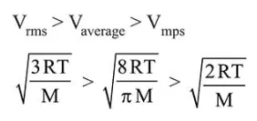 Root mean square speed $\left(V_{r m s}\right) ;$ most probable speed $\left(\mathrm{V}_{\mathrm{mp}}\right) ;$ average speed $\left(\mathrm{V}_{\mathrm{av}}\right)$