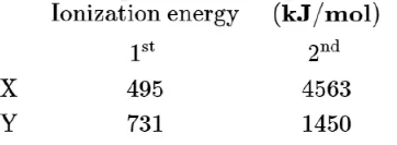 Identify the elements $X$ and $Y$ using the ionisation energy values given below: