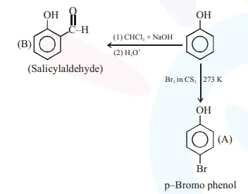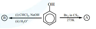 Identify the major products A and B respectively in the following reactions of phenol.