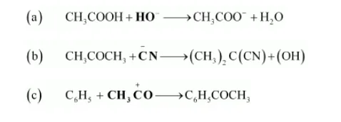 Here, ${ }^{-} \mathrm{CN}$ acts as a nucleophile as it is an electron-rich species, i.e., it is a nucleus-seeking species.