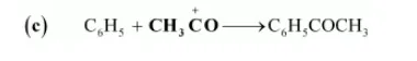 Here, $\mathrm{CH}_{3} \stackrel{+}{\mathrm{C}} \mathrm{O}$ acts as an electrophile as it is an electron-deficient species.