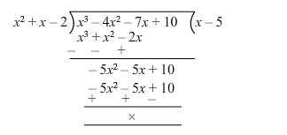 $f(x)=0=>\left(x^{2}+x-2\right)(x-5)=0$